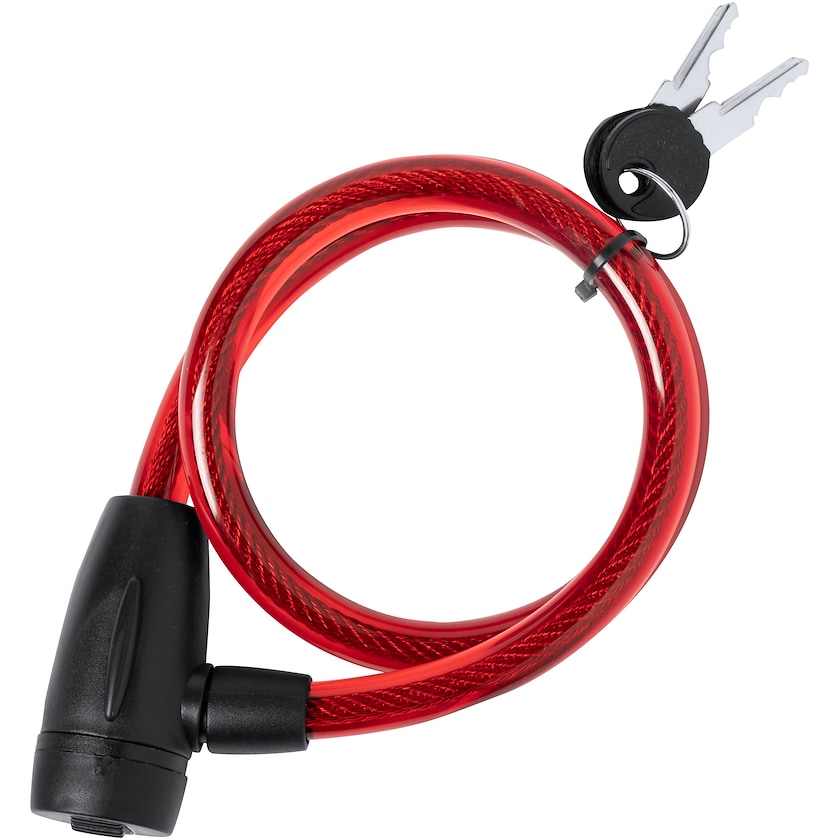 Pyörän lukko teräsvaijerilla. Lukon mukana on kaksi avainta. Painatuksen saa maksimissaan kahdella painovärillä.