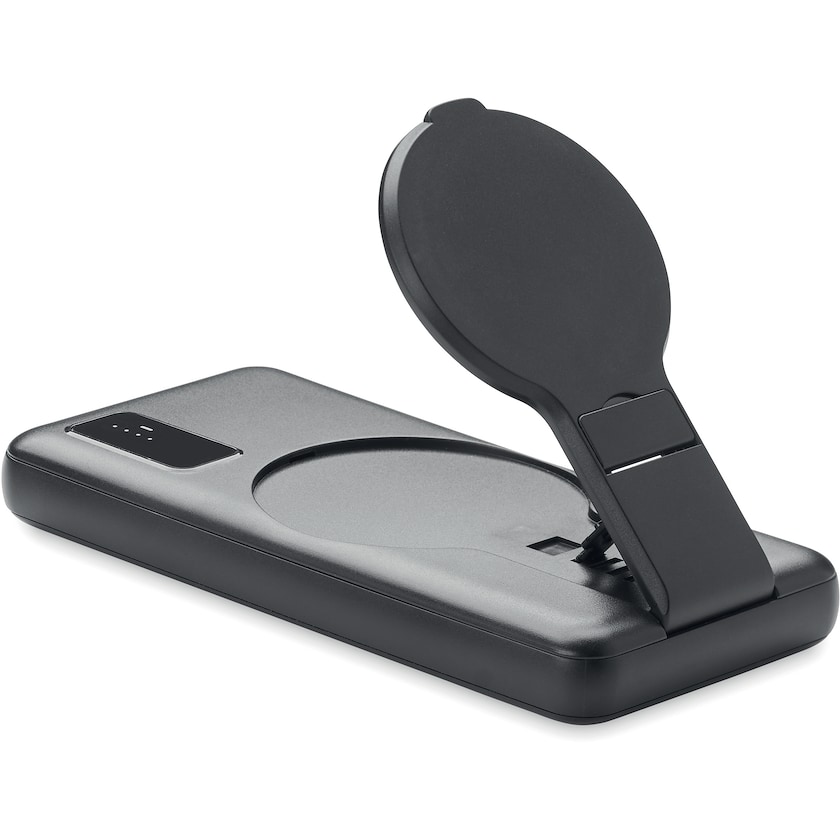 Virtapankki magneettitelineellä ja langattomalla laturilla. Yhteensopiva iPhone 12 ja uudempien kanssa. Sisältää ylimääräisen magneettisen metallirenkaan, joka tukee muiden ei-magneettisten langattoman latauksen puhelimien lataamista.