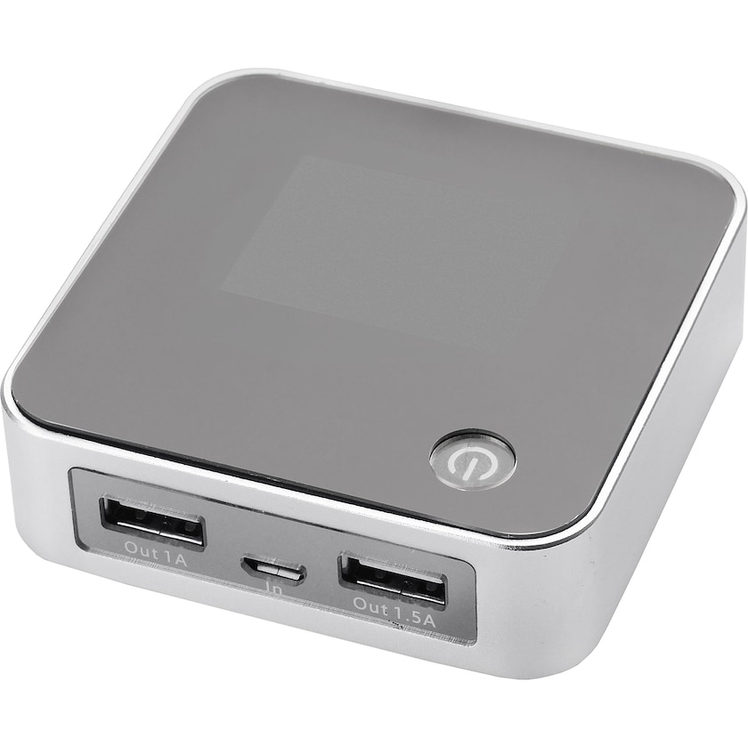 Virtapankki, jonka etuosaan syttyy napin painalluksesta yrityksesi logo, grafiikka tai teksti. Concord on tehokas metallista valmistettu varavirtalähde, jonka näyttö on vahvaa muovia. Toivomasi logo, kuvio tai teksti kaiverretaan laitteen etupuolelle, ja siihen syttyy valo nappia painettaessa. Kahden USB-portin ansiosta voit ladata vara-akusta virtaa kahteen eri laitteeseen samanaikaisesti. Display-näyttö kertoo, paljonko akussa on virtaa jäljellä. Sisääntulo (input) 5V/1A, ulostulo (output) 5V/1A ja 2A. Mukana mikro-USB-kaapeli.