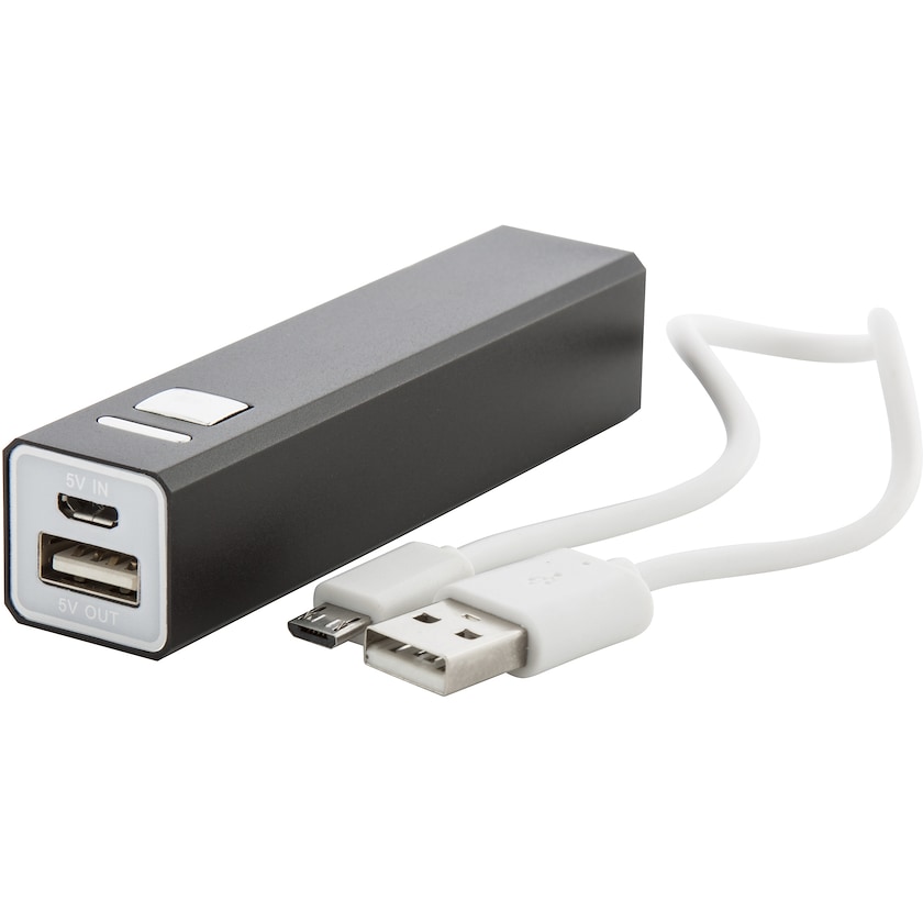 Hintansa arvoinen alumiininen voimapankki. Micro-USB-kaapeli sisältyy hintaan. Tuote on kustomoitavissa joko max. 2-värisellä painatuksella tai laserkaiverruksella.