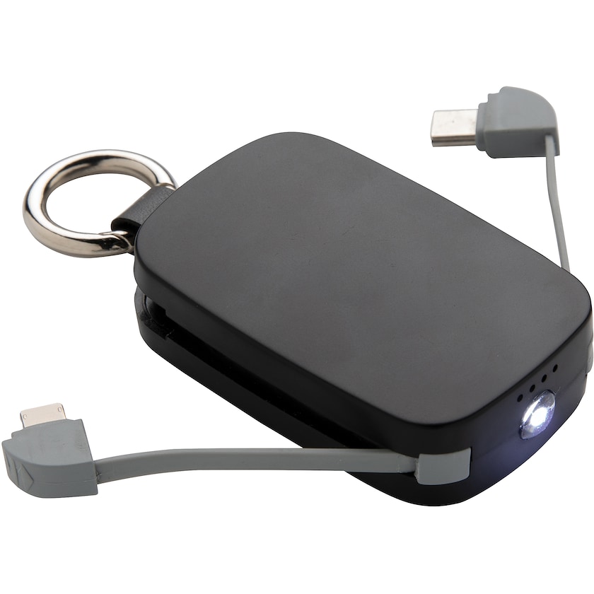 Virtapankki, jossa on intergroidut latauskaapelit sekä sisäänrakennettu taskulamppu. Laitteessa on IOS-liitin sekä C-tyypin kaapeli. Input 5V/1A, output 5V/1A.