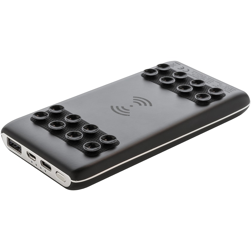 Virtapankkiin saa kaiverruksella logon, joka loistaa, kun laite on käytössä. Laturin voi kiinnittää matkapuhelimeen imukupeilla. Langattoman latauksen lisäksi laitteessa on USB- ja C-portit. Output: 5V/2.1A, input: 5V/1.5A. Langaton output 5V/1A 5W. Rekisteröity design®.