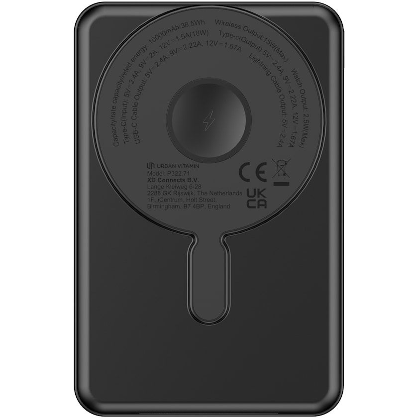 Tehokas varavirtalähde, jossa on nopea, langaton magneettinen lataus. Lataaminen on mahdollista myös powerbankin USB-C-portin tai sisäänrakennetun Lightning-kaapelin kautta, jolloin lataus on vieläkin nopeampaa. Powerbankissa on tuki, jonka ansiosta se toimii myös puhelintelineenä. Painike sijaitsee tuen kohdalla.