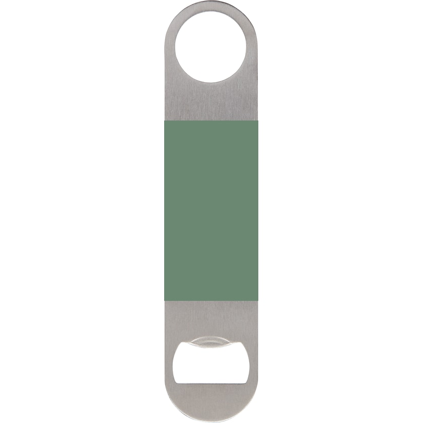 Pullonavaaja ruostumattomasta teräksestä, keskellä värjätty pinta. Pullonavaaja ammattimaisella laadulla. Merkintä voidaan tehdä joko painatuksella tai laserkaiverruksella.
