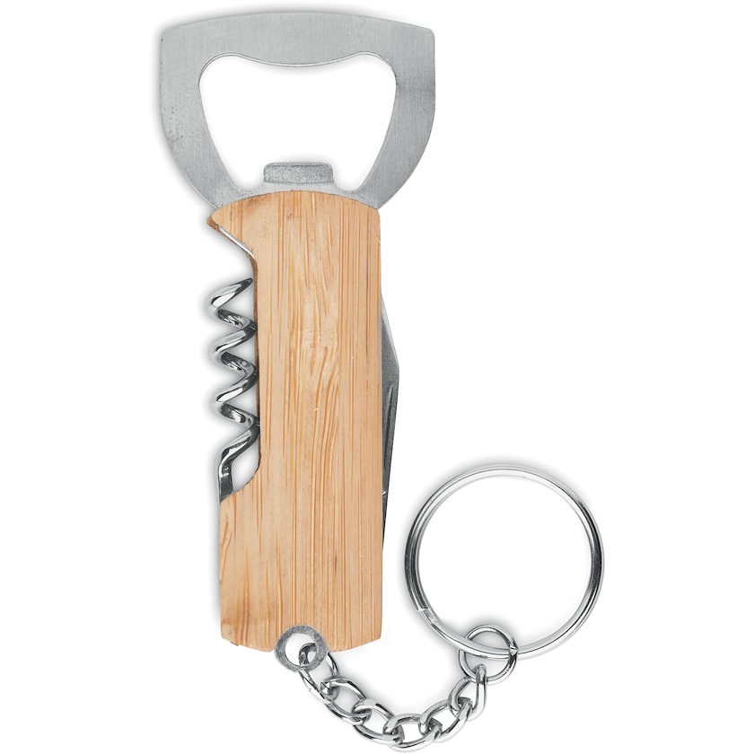 Pullonavaaja korkkiruuvilla ja taskuveitsellä. Rivera on valmistettu bambusta ja ruostumattomasta teräksestä.