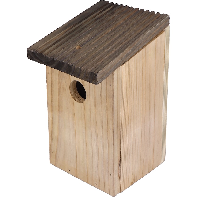 Rustiikkinen linnunpönttö puusta. 30 mm aukko tekee linnunpöntöstä sopivan pienemmille linnuille. Materiaalina FSC-merkitty puu. Merkkaus laserkaiverruksena.