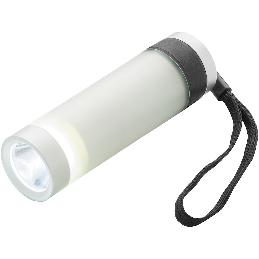 Monikäyttöinen LED-valo, joka toimii sekä taskulamppuna että valaisimena. Lamppu on valmistettu alumiinista ja polypropeenista. Loistava lisävaruste retkeilijälle! Mukana paristot.