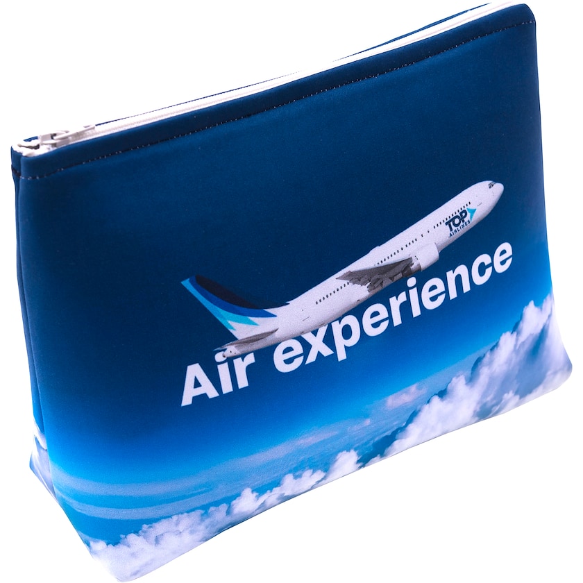 Toilettilaukku digipainatetulla ulkopuolella. Valmistettu pehmeästä pesunkestävästä materiaalista. Lataa painomalli alta ja suunnittele ja sommittele uniikki painatus.