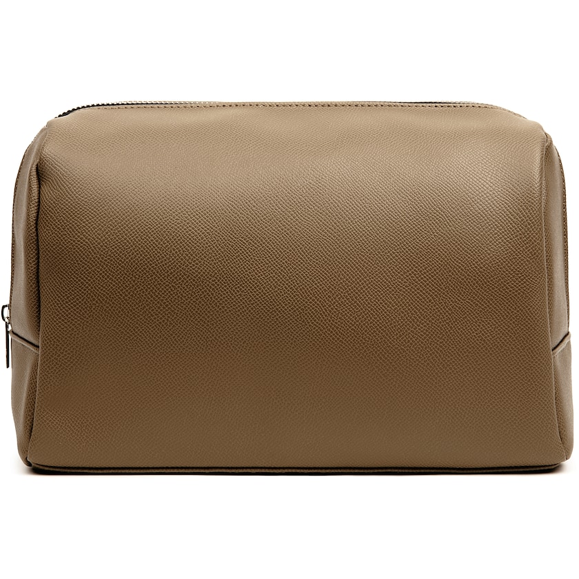 Toilettilaukku ajattomalla designilla. Ulkopuoli on valmistettu kierrätetystä keinonahasta. Pitkän vetoketjun ansiosta sisältöön pääsee helpommin käsiksi.