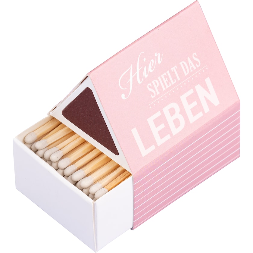 Hauska talon muotoinen tulitikkuaski. Painatus maksimissaan neljällä Pantone-värillä tai vaihtoehtoisesti CMYK-väreissä. Voit valita vapaasti 16 päänväristä ja 2 puuväristä.