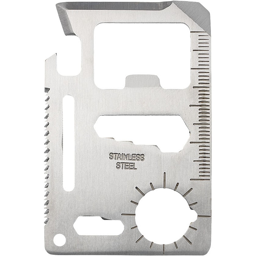 Työkalukortti ruostumattomasta teräksestä. 15 toimintoa. Kortti toimitetaan hienossa tekonahkakotelossa.