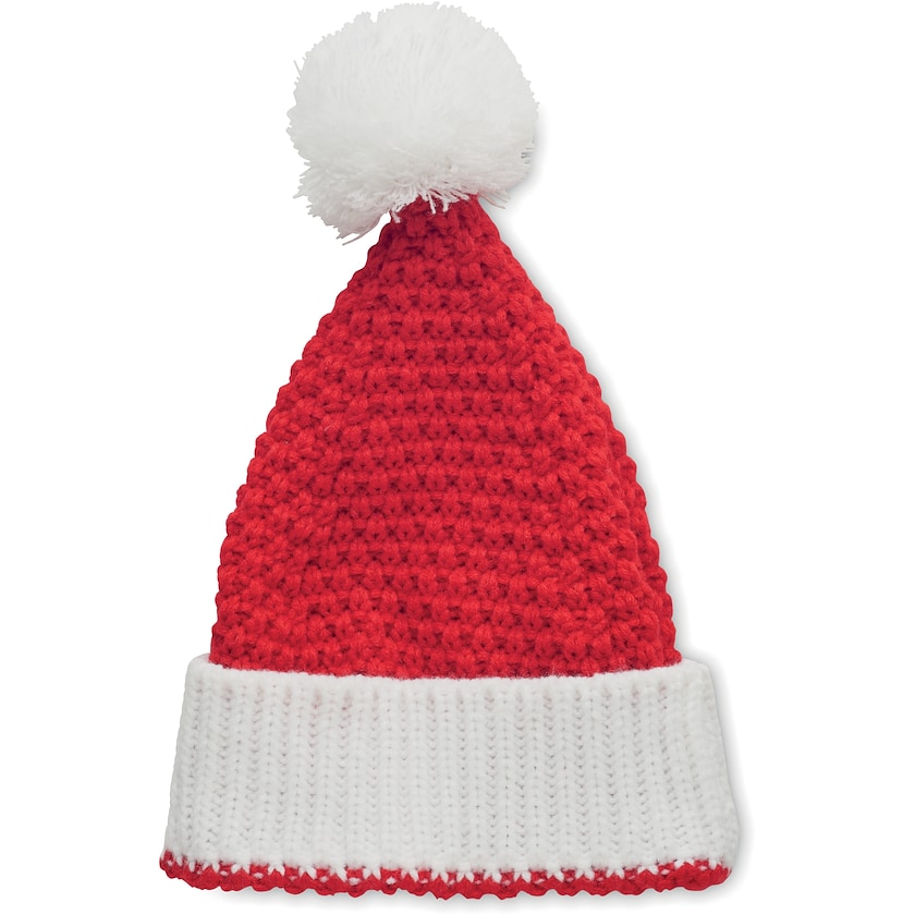Neulottu tonttulakki ympäristöystävällisestä rPET-materiaalista. Hattu on melko lyhyt malliltaan. Merkintä tehdään brodeerauksella.