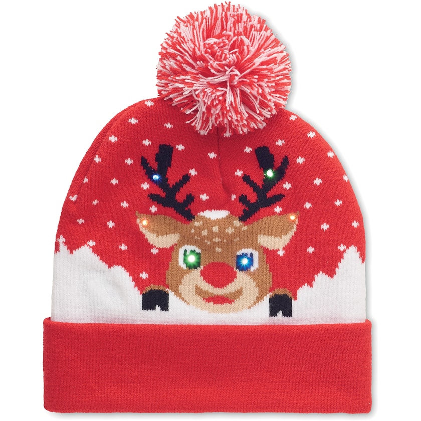 Hattu jouluaiheisella kuviolla ja 6 kpl LED-lamppuja. Pipo on valmistettu ihanan pehmeästä akryylista. Tämän hatun kanssa olet joulujuhlien keskipiste!