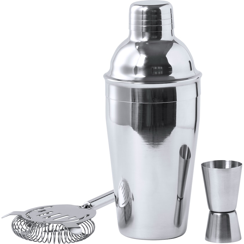 Cocktailsetti, jonka avulla voi tehdä drinkkejä ammattimaisesti myös kotona. Setti sisältää shakerin, mittalasin ja drinkkisiivilän. Laserkaiverruksen hinta sisältää merkkauksen shakeriin.