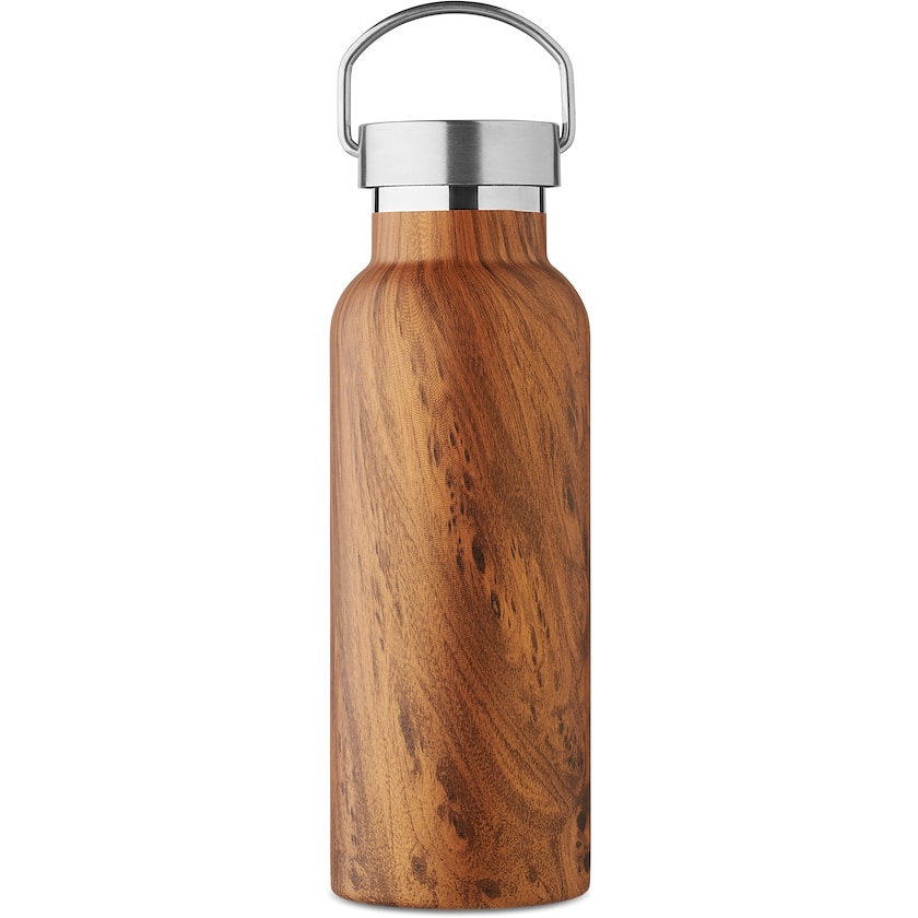 Ruostumattomasta teräksestä valmistettu termospullo puisella ilmeellä. Teräs on valmistettu 90 % kierrätetystä ruostumattomasta teräksestä ja 10 % ruostumattomasta teräksestä. Termospullo on vesitiivis. Merkintä voidaan tehdä joko painatuksella tai laserkaiverruksella.