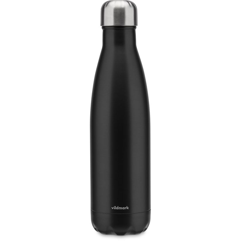 Kaunis teräksinen termospullo merkiltä Vildmark. Pullo pitää juomat viileinä 24 tunnin ajan ja lämpiminä 12 tunnin ajan. Se on valmistettu laadukkaasta 18-8-teräksestä ja sen korkki on erittäin tiivis ja pitävä.