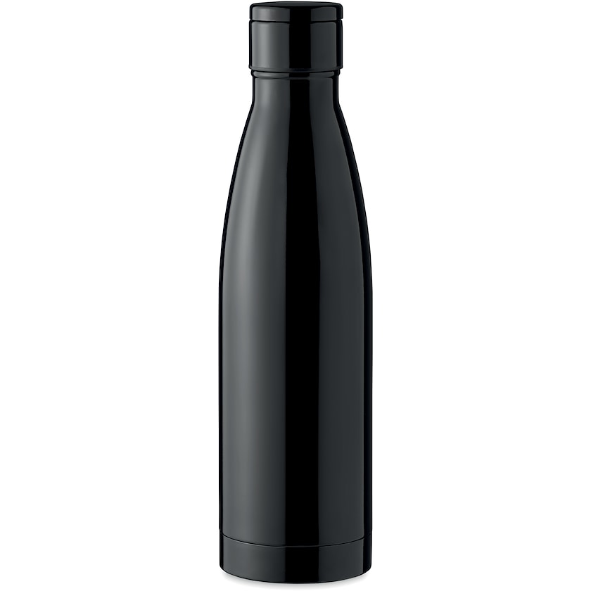Musta ruostumattomasta teräksestä valmistettu termospullo, jossa LED-lämpömittari kannessa. Lämpömittari saa virtansa vaihdettavista CR 2032 -paristoista (mukana). Vesitiivis. 1-väripainatuksessa painopinta-ala on täysi 200 x 90 mm.