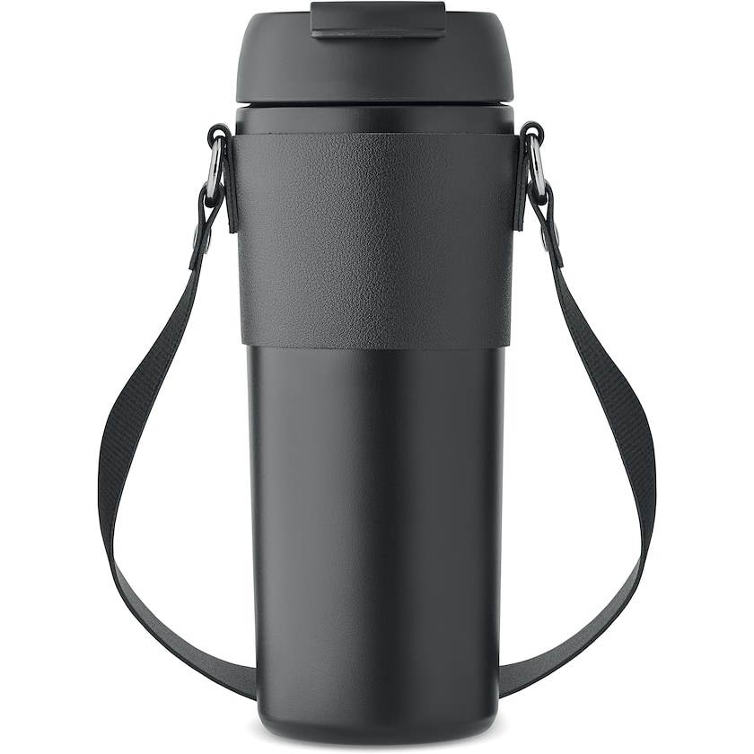 Tukeva ruostumattomasta teräksestä valmistettu termospullo mukin kanssa. Termoksessa on tuplaseinämät ja se on kauniisti lakattu. Vesitiivis.