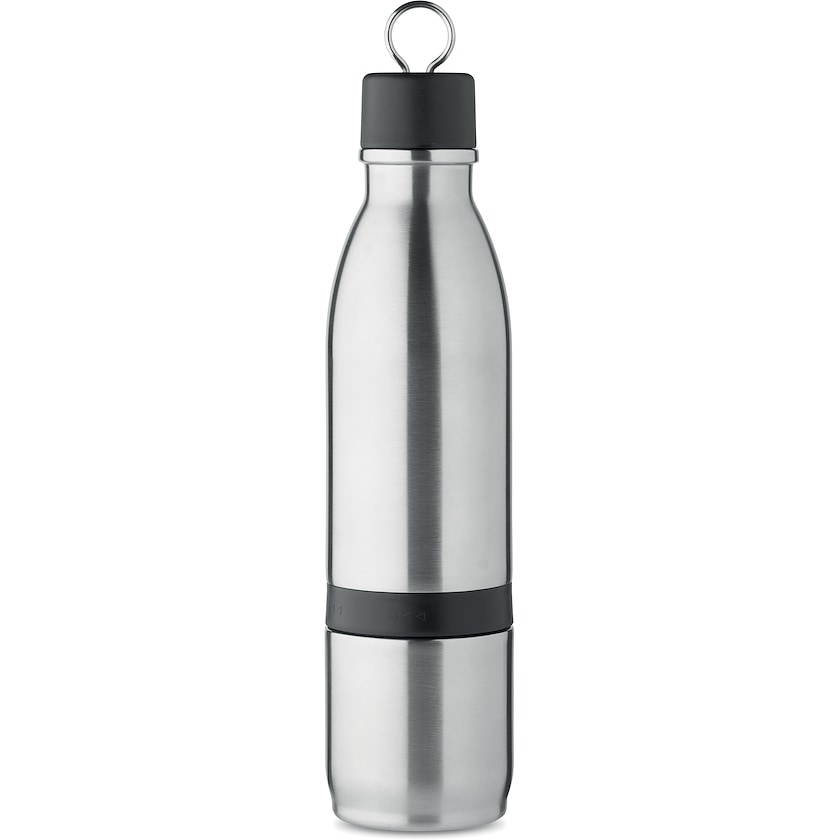 Termos mukin kanssa. Nelsonville on valmistettu ruostumattomasta teräksestä ja siinä on kaksinkertaiset seinämät, joten juoma pysyy lämpimänä pitkään. Vesitiivis. Pulloon mahtuu 50 cl ja mukiin 30 cl. Mukissa on ns. flip-lid-lock.