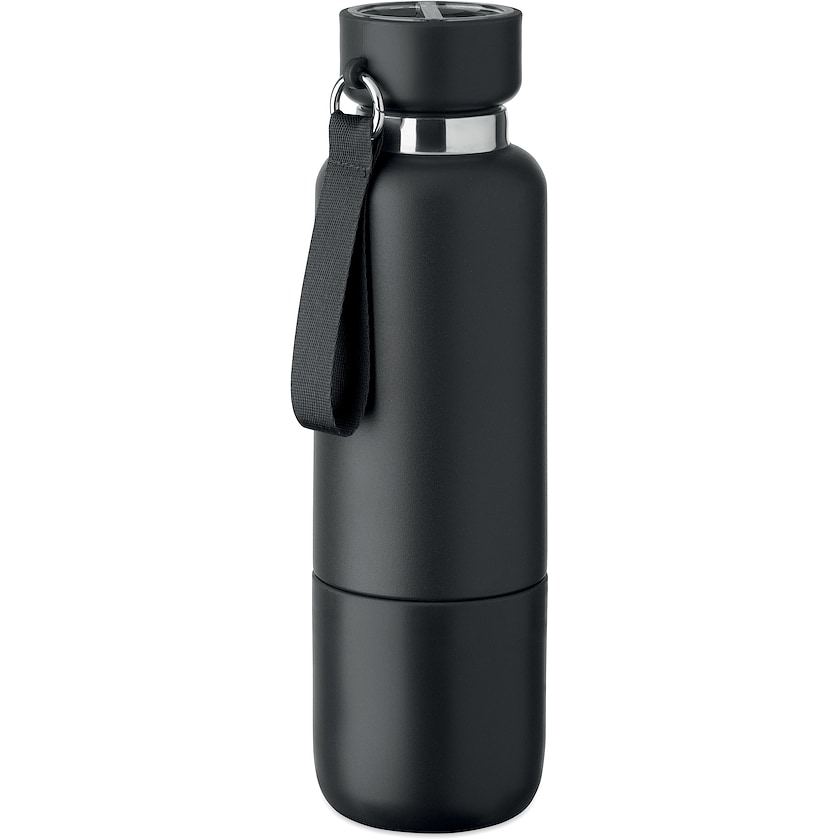 Kompakti termos kierrätetystä ruostumattomasta teräksestä. Pohjassa on muki ja kannessa hihna. Vuotamaton. Valmistettu 90 % kierrätetystä ruostumattomasta teräksestä ja 10 % ruostumattomasta teräksestä.