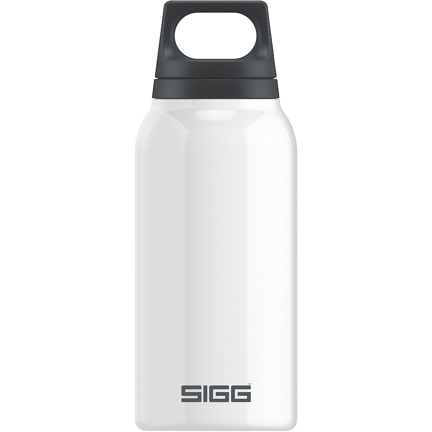 Pieni teräksinen Sigg-pullo kuumille ja kylmille juomille. Korkealaatuinen pullo on vakuumieristetty, ja siinä on täysin tiivis korkki.