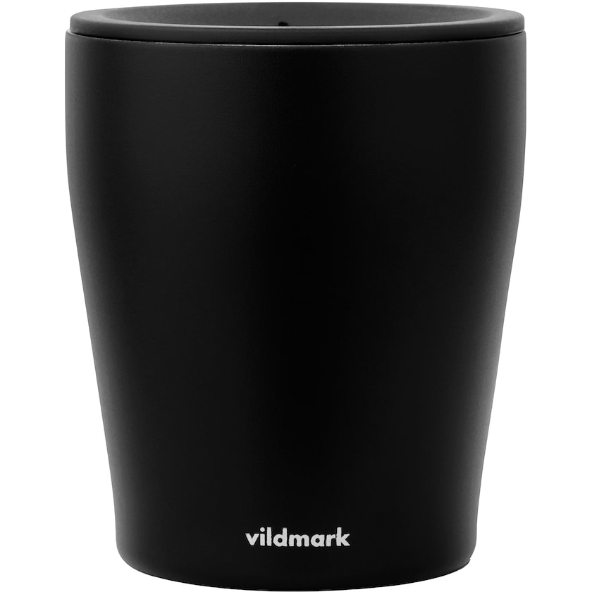 Tyylikäs teräsmuki kannella. Mukin materiaalina on laadukas ruostumaton teräs. Vildmark Take Away pitää juomat kuumina yli tunnin ajan.